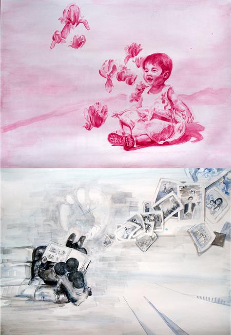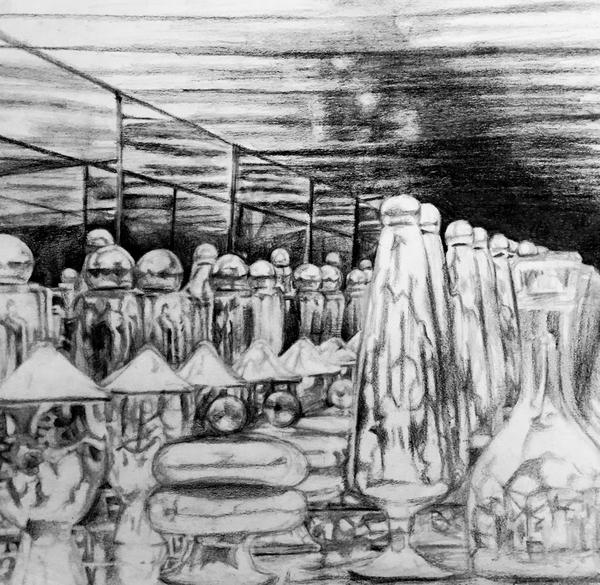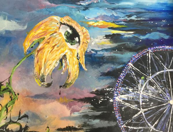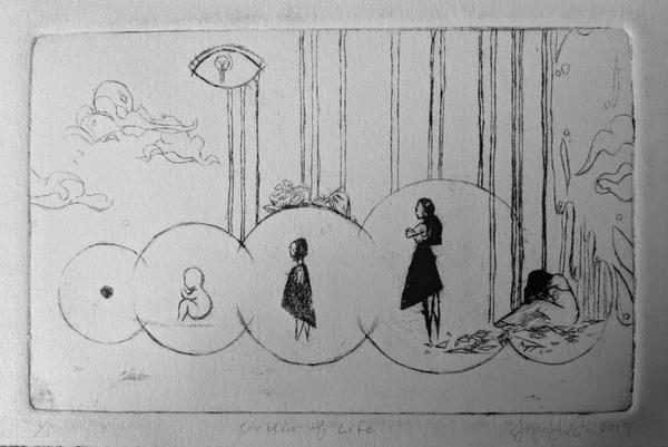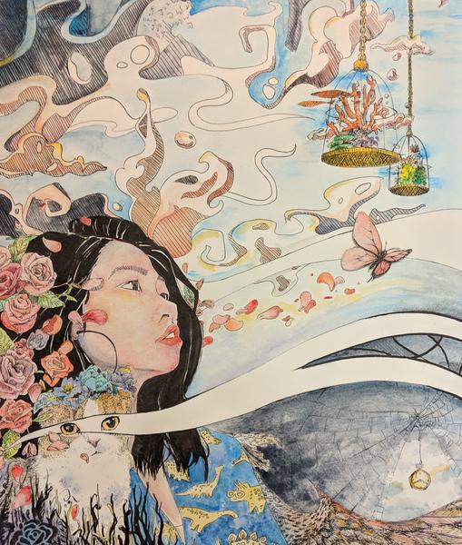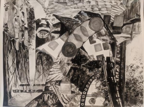 At a time when I was supposed to be figuring out who I'm meant to be, I felt lost, adrift, with no real purpose or identity. Sadness, hesitation, anticipation, hurt, pressure, nostalgia— a whirlwind of emotions throughout the year left me disoriented and uncertain. The chaos and confusion manifested into my work, showing a jumbled up, not entirely coherent array of images that reflected my perception of my life. On occasion, I drew from Surrealism and the idea of the combination of the bizarre amidst the mundane. I emphasized mark-making as a means of expression.